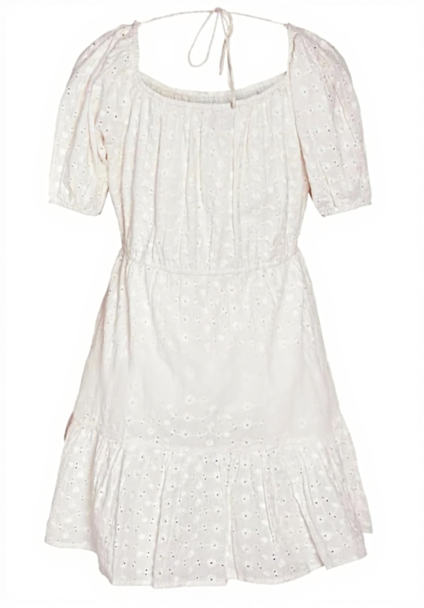 Das Kleid ist aus 100% Baumwolle gefertigt, was für Weichheit und Atmungsaktivität sorgt, ideal für sommerliche Temperaturen.